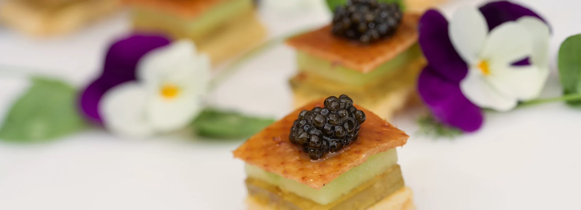 Add a Morden twist to the traditional Beijing roasted duck, with this supplement of duck skin, Osmanthus pudding, cucumber & Baerii caviar
